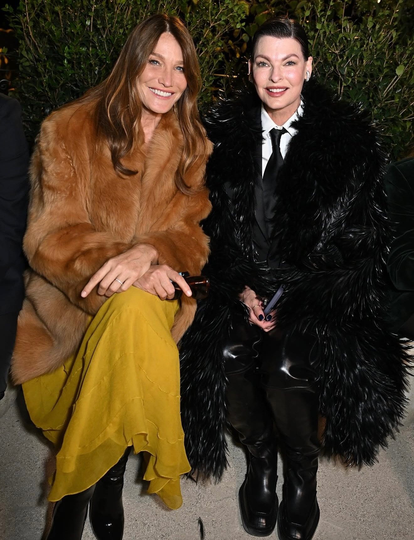 El front row fue un desfile de personalidades y elegancia. Carla Bruni, Zoe Kravitz, Lila Moss y la icónica Madonna captaron todas las miradas, demostrando cómo Saint Laurent sigue siendo un referente del glamour global. Cada invitada no solo asistió al espectáculo, sino que se convirtió en parte del relato visual del desfile.