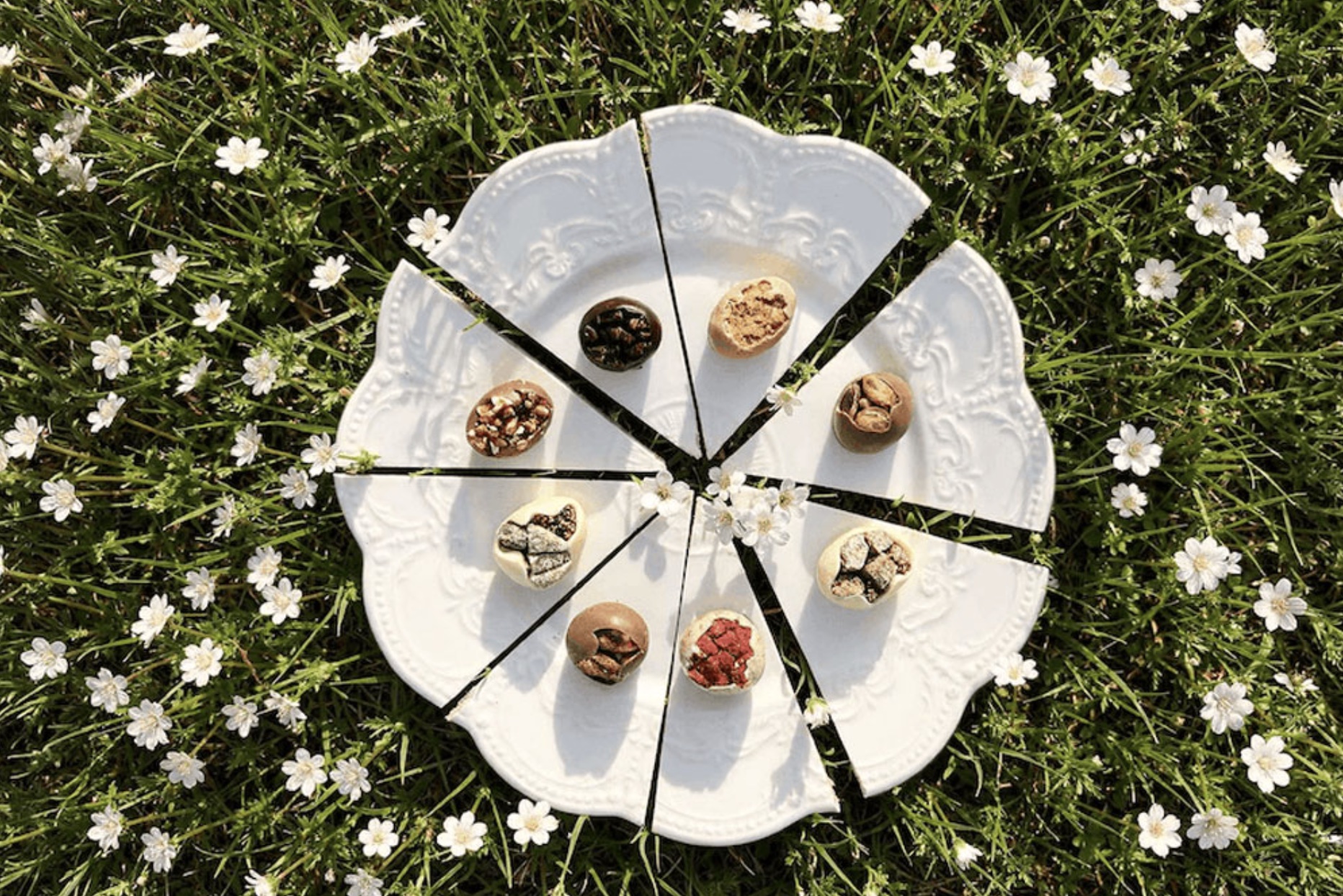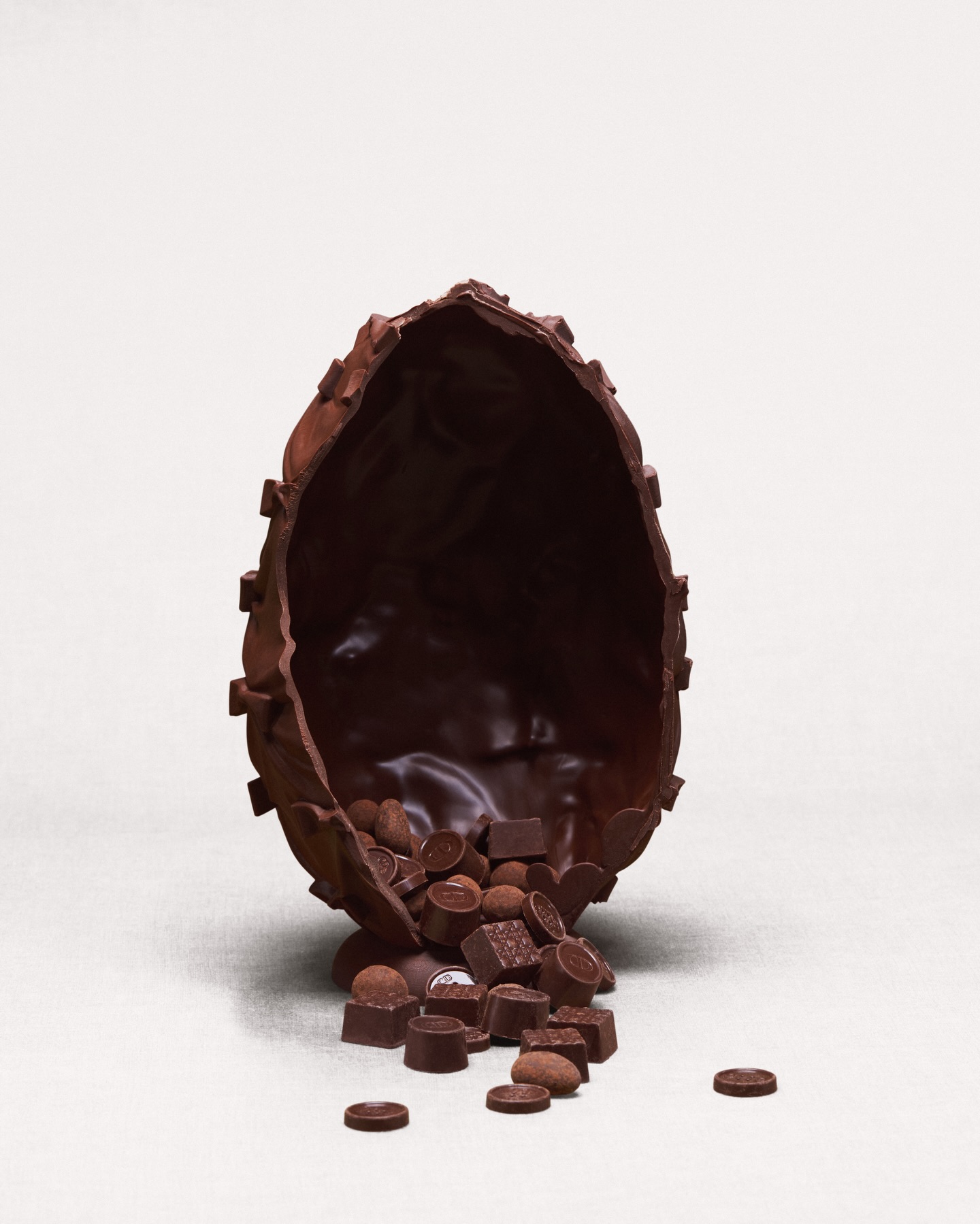 La colección se completa con una selección de mini huevos de chocolate en siete sabores cuidadosamente elegidos, que reflejan el diálogo entre tradición e innovación, concebidos como un pequeño momento de indulgencia.