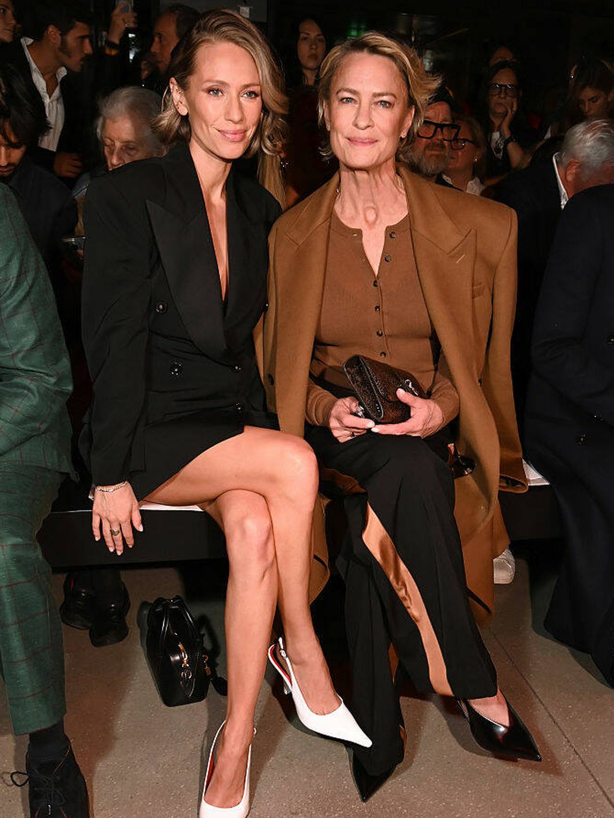 La modelo y ángel de Victoria’s Secret también apostó por el look ejecutivo con una falda lápiz y chaqueta a juego, con una camisa azul claro, dejando su cabello suelto al natural. La actriz Jenna Coleman se decantó por un abrigo largo color marrón combinado con botines en rojo quemado y Chiara Ferragni llevó un vestido azul marino con detalle anudado en el torso.