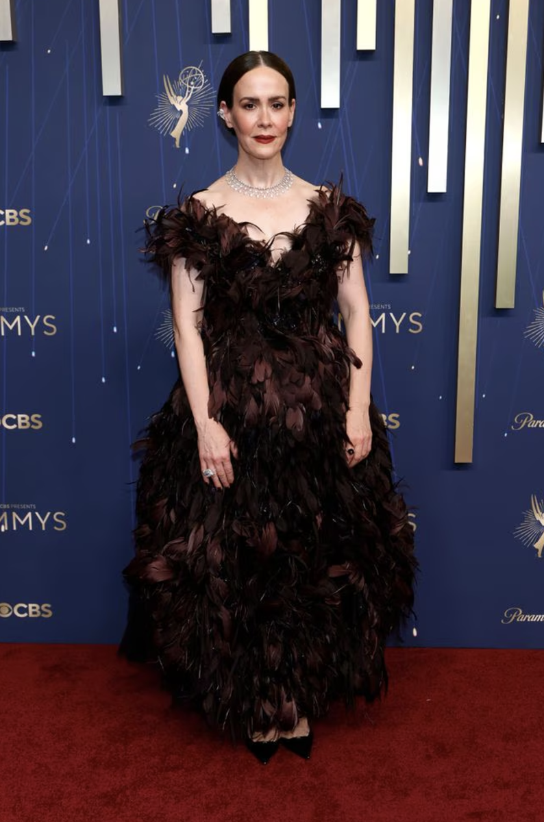 Sarah apuesta por el dramatismo con un diseño de plumas que acapara miradas.