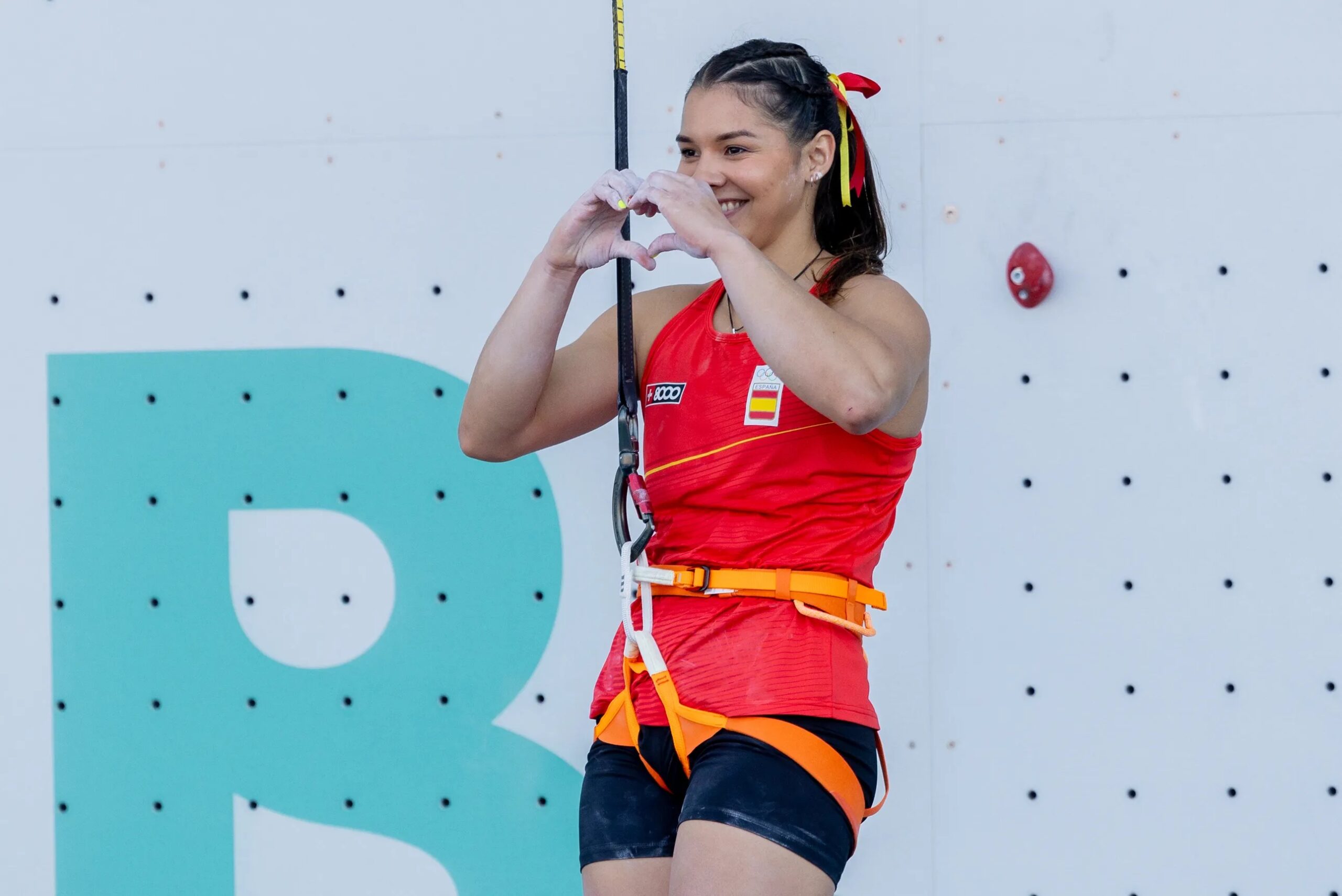 La tendencia coquette no podía faltar en estos Juegos Olímpicos y la vimos en la disciplina de escalada de velocidad. La deportista española lució un recogido rematado con una coleta con lazos con los colores de España.