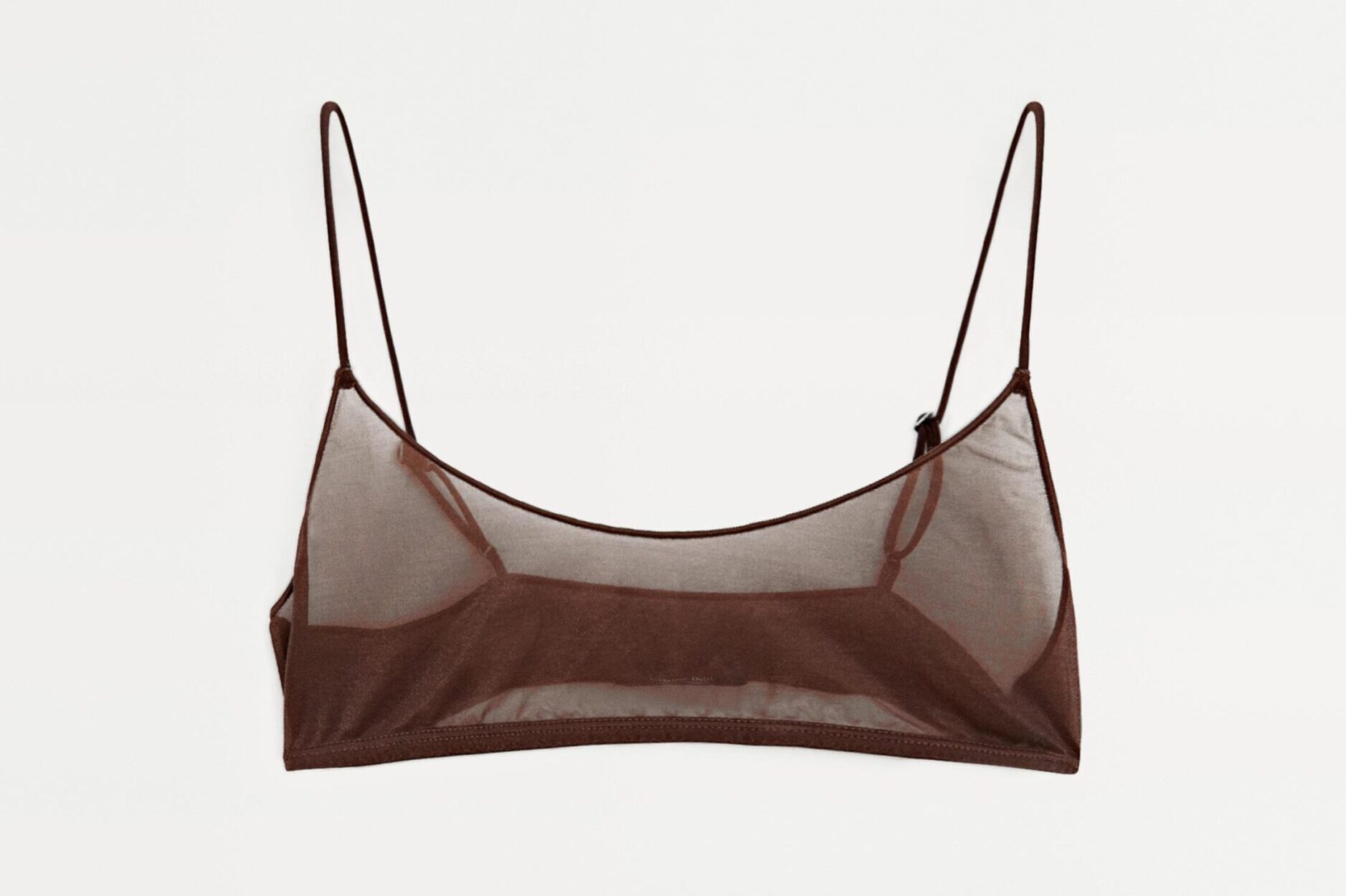 - Entre los diseños destacan sujetadores con aro, bralettes de encaje, tops tipo bandeau en seda y piezas semitransparentes.
