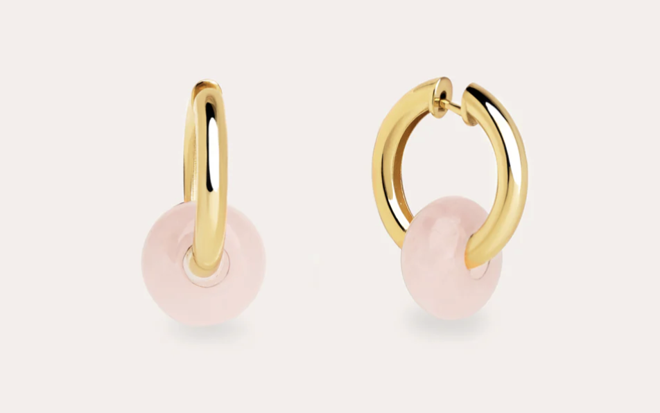 Estos aros bañados de Plata de Ley 925 bañados en Oro de 18kt con su piedra cuarzo rosa, se convertirán en tu amuleto de la suerte.