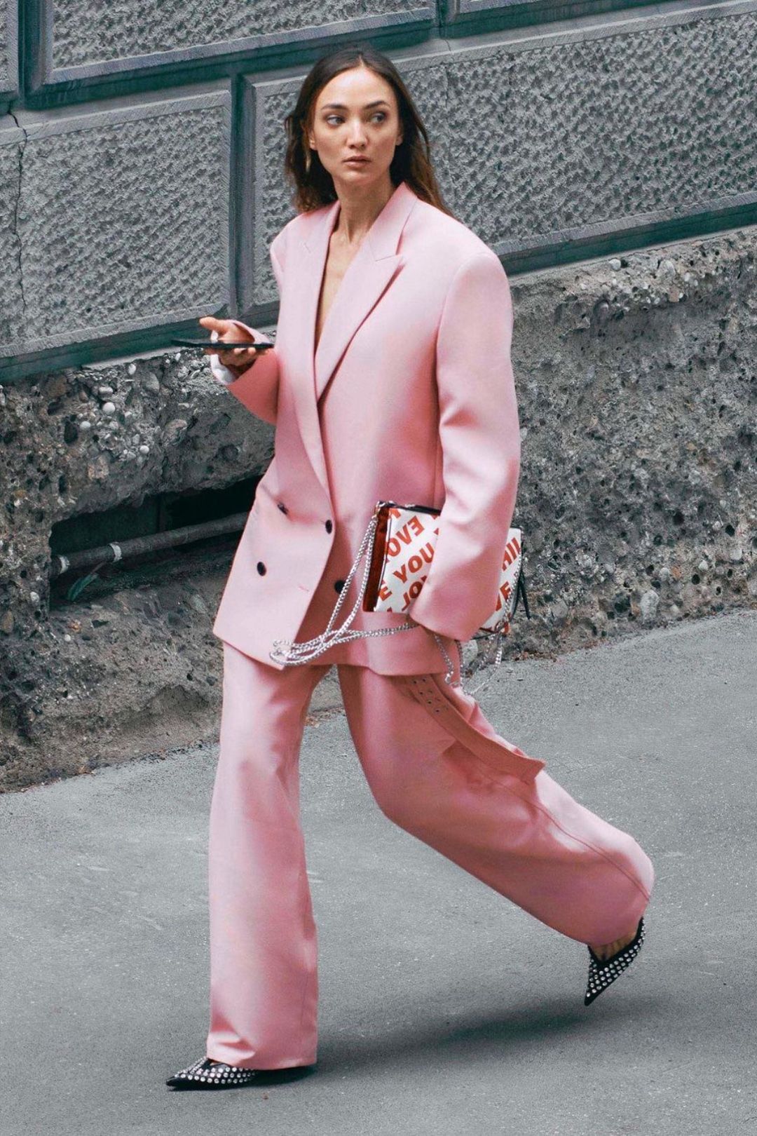 Para quienes prefieren una estética más audaz, el Millennial Pink también se adapta al universo urbano. Chaquetas oversize, pantalones cargo refinados y accesorios llamativos demuestran que este tono puede dialogar con códigos más utilitarios.