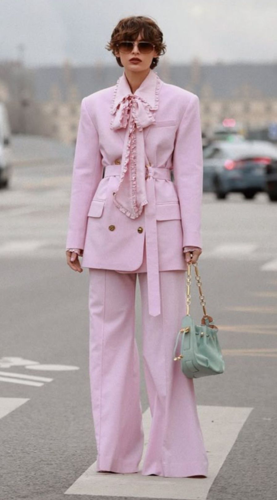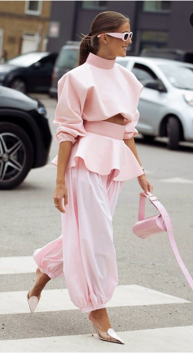 Para quienes prefieren una estética más audaz, el Millennial Pink también se adapta al universo urbano. Chaquetas oversize, pantalones cargo refinados y accesorios llamativos demuestran que este tono puede dialogar con códigos más utilitarios.