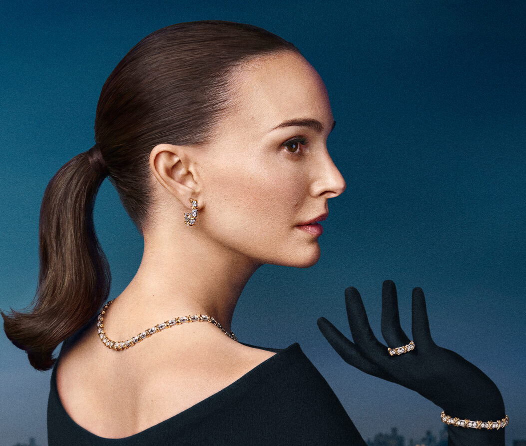 Fotografiada por Gordon von Steiner en la emblemática tienda insignia de la casa en la Quinta Avenida, The Landmark, las imágenes muestran a Natalie Portman llevando las colecciones icónicas de la casa, entre las que se incluyen HardWear by Tiffany, Knot by Tiffany, Sixteen Stone by Tiffany y T by Tiffany.