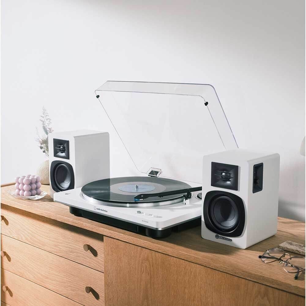 El precio del giradiscos AT-LP70xBT es de 249 euros y el de los altavoces de 199 euros, el combo perfecto para los melómanos.
