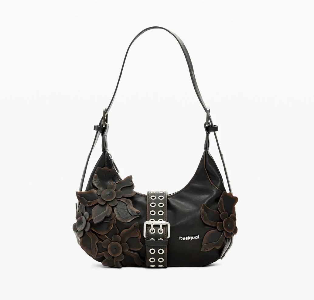 El conjunto se completa con un bolso pequeño con asa extensible, apliques florales y correa con hebilla decorativa, que suma un contrapunto artesanal y femenino. Una propuesta que combina archivo, tendencia y actitud urbana, reafirmando la capacidad de Desigual para reinterpretar sus códigos más icónicos en clave contemporánea.