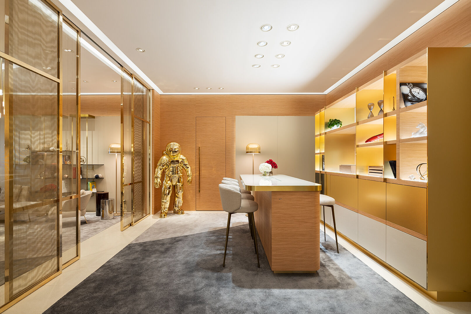 El espacio integra elementos de diseño que reflejan el espíritu pionero y la constante búsqueda de la precisión que definen a la firma, a través de piezas artísticas, detalles dorados y distinguidas vitrinas que ponen en valor la minuciosa atención al detalle y los elevados estándares de calidad de OMEGA. Entre los elementos más icónicos del espacio destaca el astronauta gigante dorado, símbolo de la estrecha conexión de OMEGA con la exploración espacial y uno de los emblemas más reconocibles del universo de la firma.