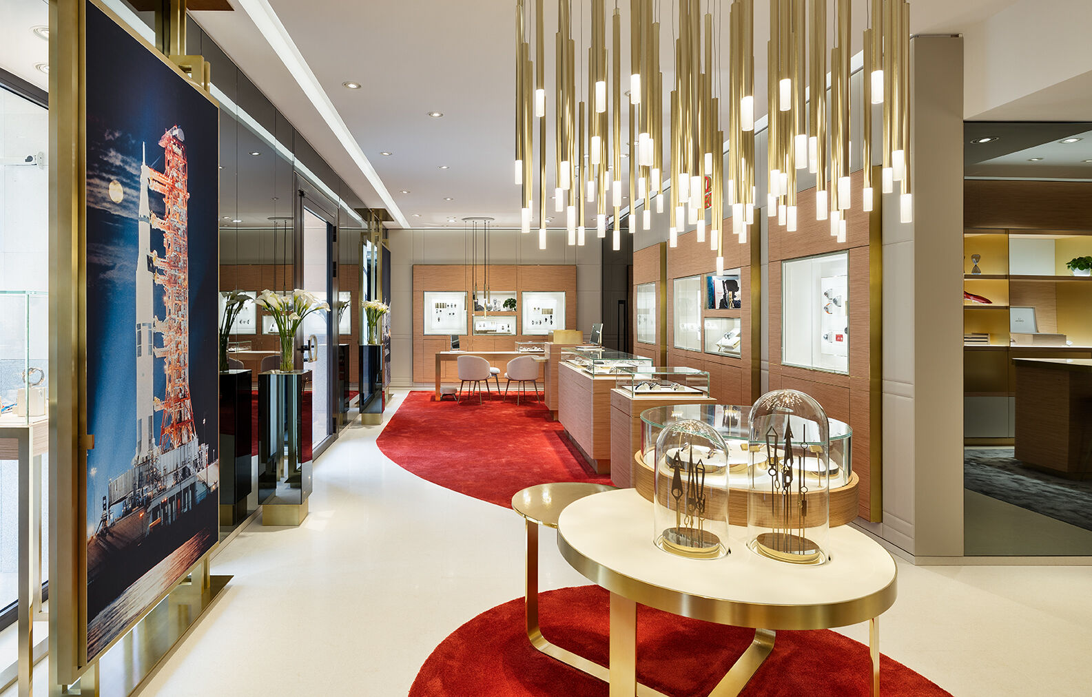 Basándose en la incomparable historia de la marca y en su compromiso con una oferta de prestigio, la nueva boutique combina la simplicidad moderna con guiños a los hitos más emblemáticos de OMEGA. El interior, acogedor y cálido, se articula en torno a más de 150 metros cuadrados pensados para ofrecer la mejor experiencia al cliente.