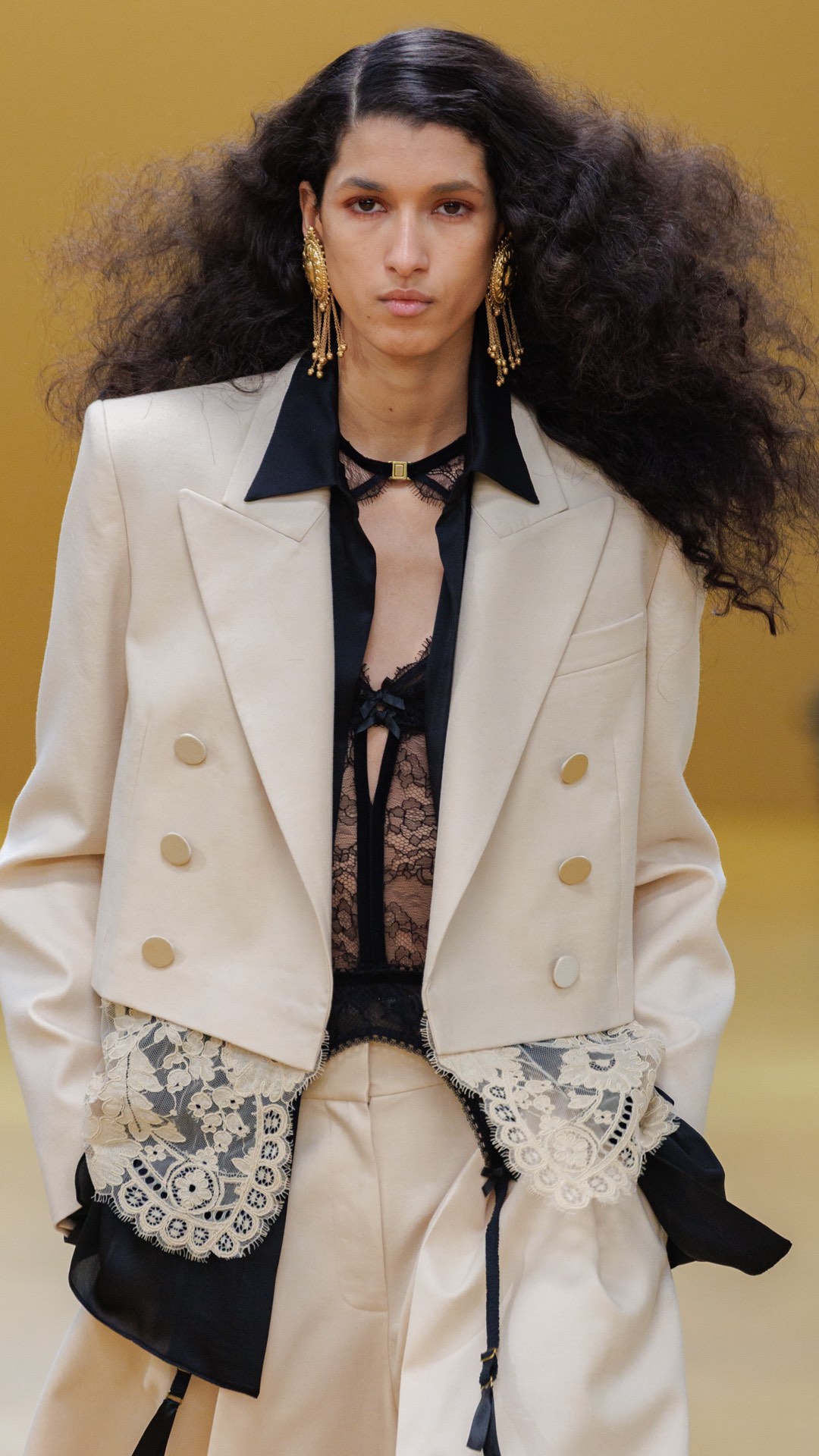 Gran parte del mensaje de esta temporada se expresa a través de las capas, realzadas por las texturas de sus diversos materiales: piel de oveja, terciopelo y seda, diseñados para resaltar la versatilidad de cada prenda. Las camisetas y las camisas de seda con mangas oversize se superponen en múltiples combinaciones, resaltadas bajo un mono vaquero estilo bomber y prendas de punto esculturales.
