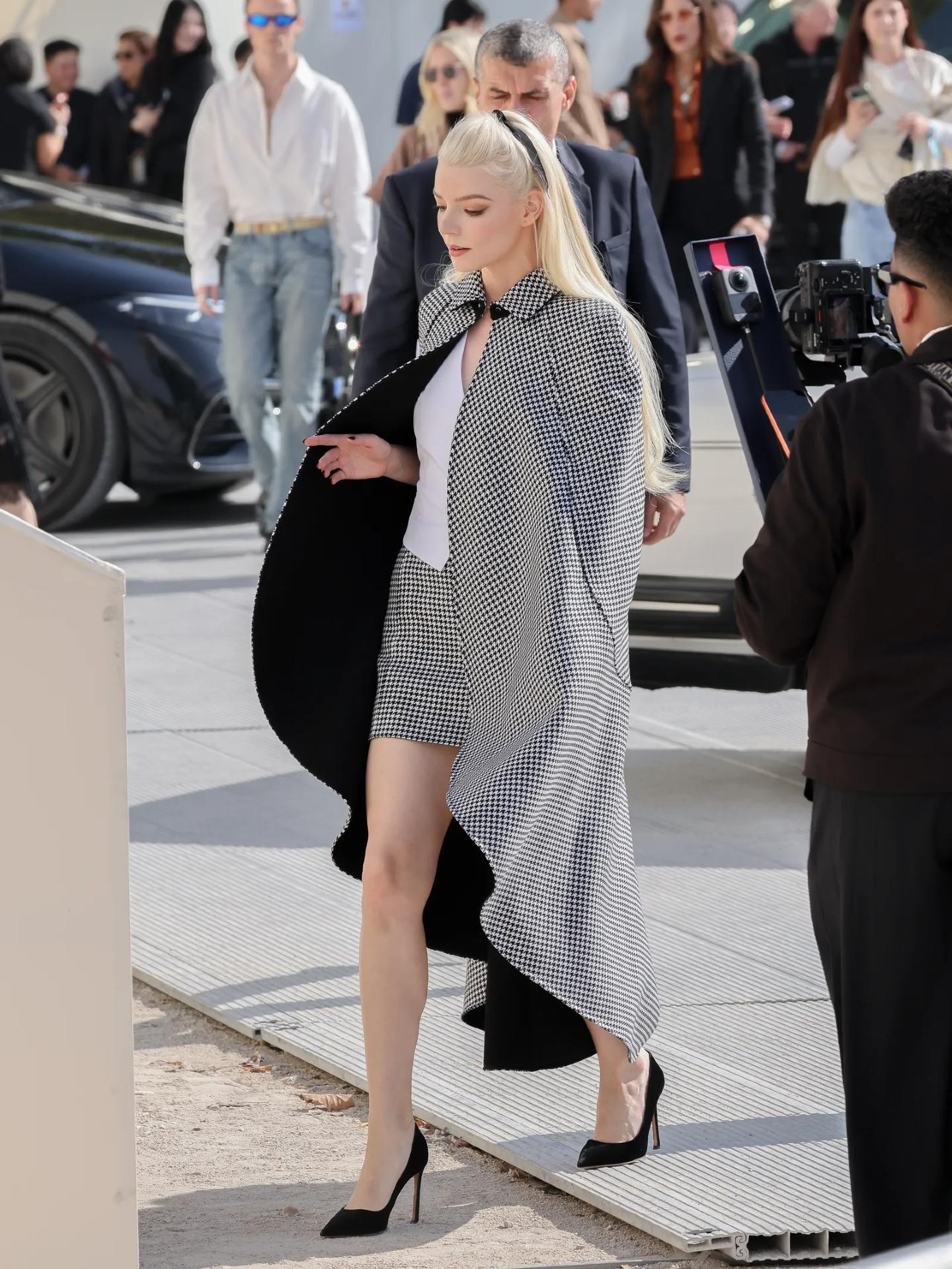 El estampado a cuadros (escocés) es el principal, pero también entran los patrones cruzados y de pata de gallo, como el dos piezas con capa de Dior, creada por Jonathan Anderson, que lució Anya Taylor-Joy en el debut del diseñador al frente de la maison. Estos estampados se encuentran en prendas como minifaldas plisadas, chaquetas oversized, cárdigans o la clásica blusa blanca abotonada. Los cuadros buscan representar el aspecto tradicional y vintage de la estética poetcore.