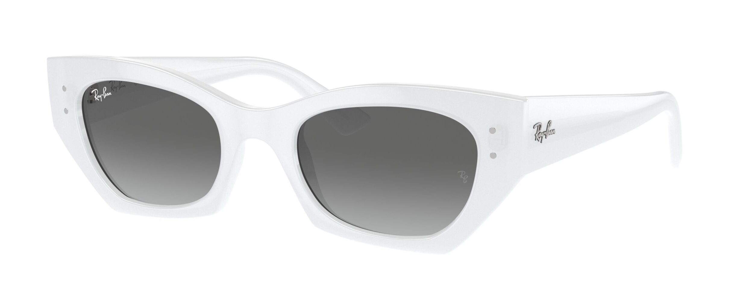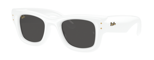 La colección transforma siluetas legendarias en piezas icónicas: monturas en blanco luminoso, lentes en gris frío y el inconfundible toque rojo de Ray-Ban. El resultado es un contraste limpio, sofisticado y magnético que no pasa desapercibido.