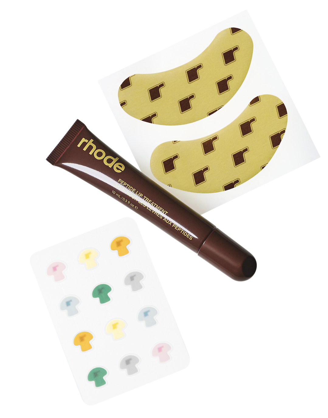Con esta colección Rhode amplía su portafolio con tres productos: Spotwear, un conjunto de parches (21 euros) para el acné desarrollados con hidrocoloide. Este ingrediente absorbe exceso de grasa y contribuye a reducir la apariencia de imperfecciones mientras protege la piel durante el proceso de recuperación. Además, los parches llegan en cinco formas distintas que buscan añadir un componente visual al tratamiento: champiñón, margarita, gominola, burbuja y curva.