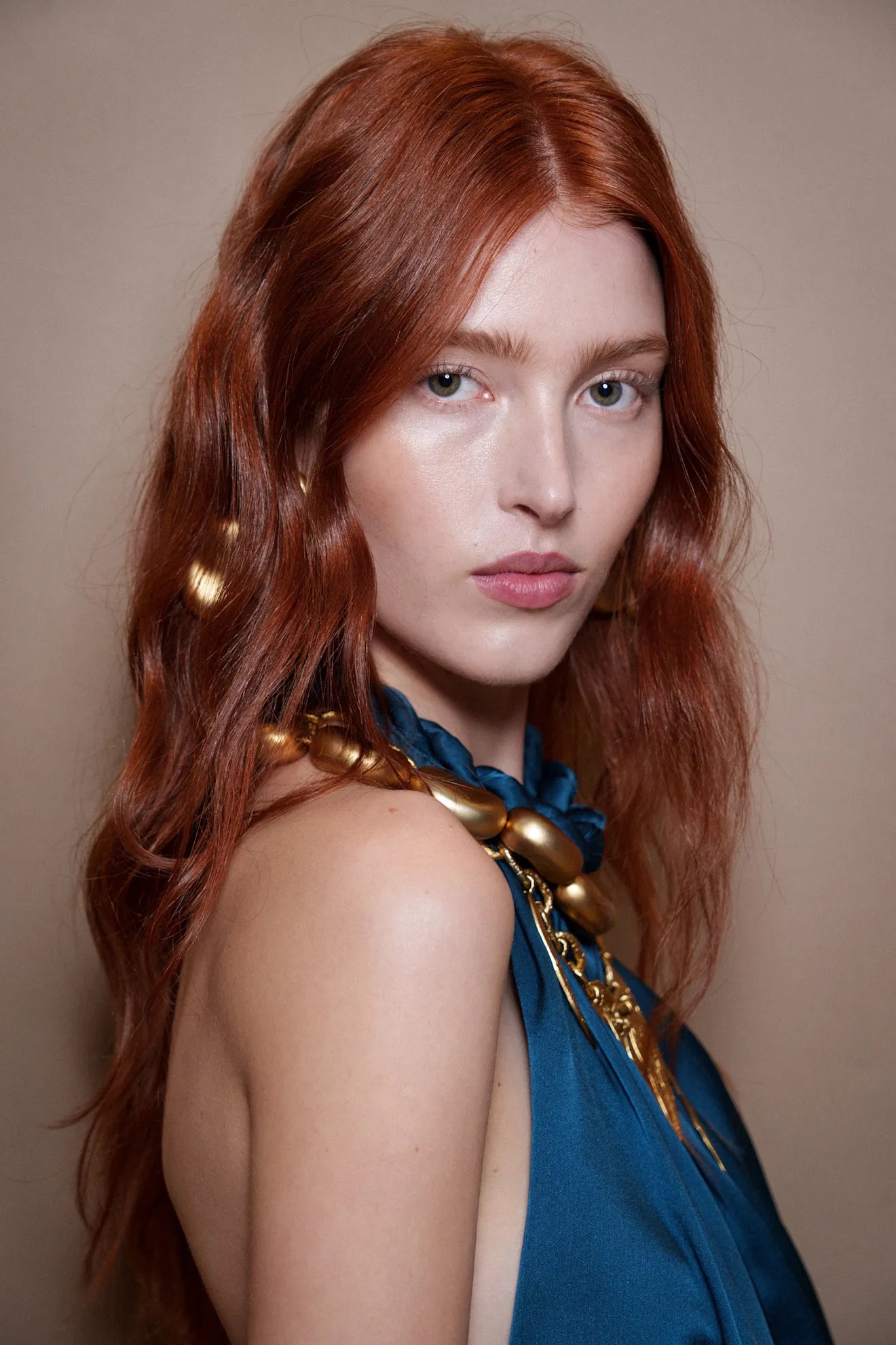 El Wolf Cutse convierte en un lienzo editorial con la técnica Color Stroke: aplicaciones de color en bloque que crean contrastes estratégicos y un efecto gráfico en movimiento. La fusión de tonos rojizos y cobrizos se realiza con los rojos más intensos de Revlonissimo Colorsmetique™, logrando impacto, brillo y textura visual. El resultado es un look dinámico, contemporáneo y lleno de actitud.