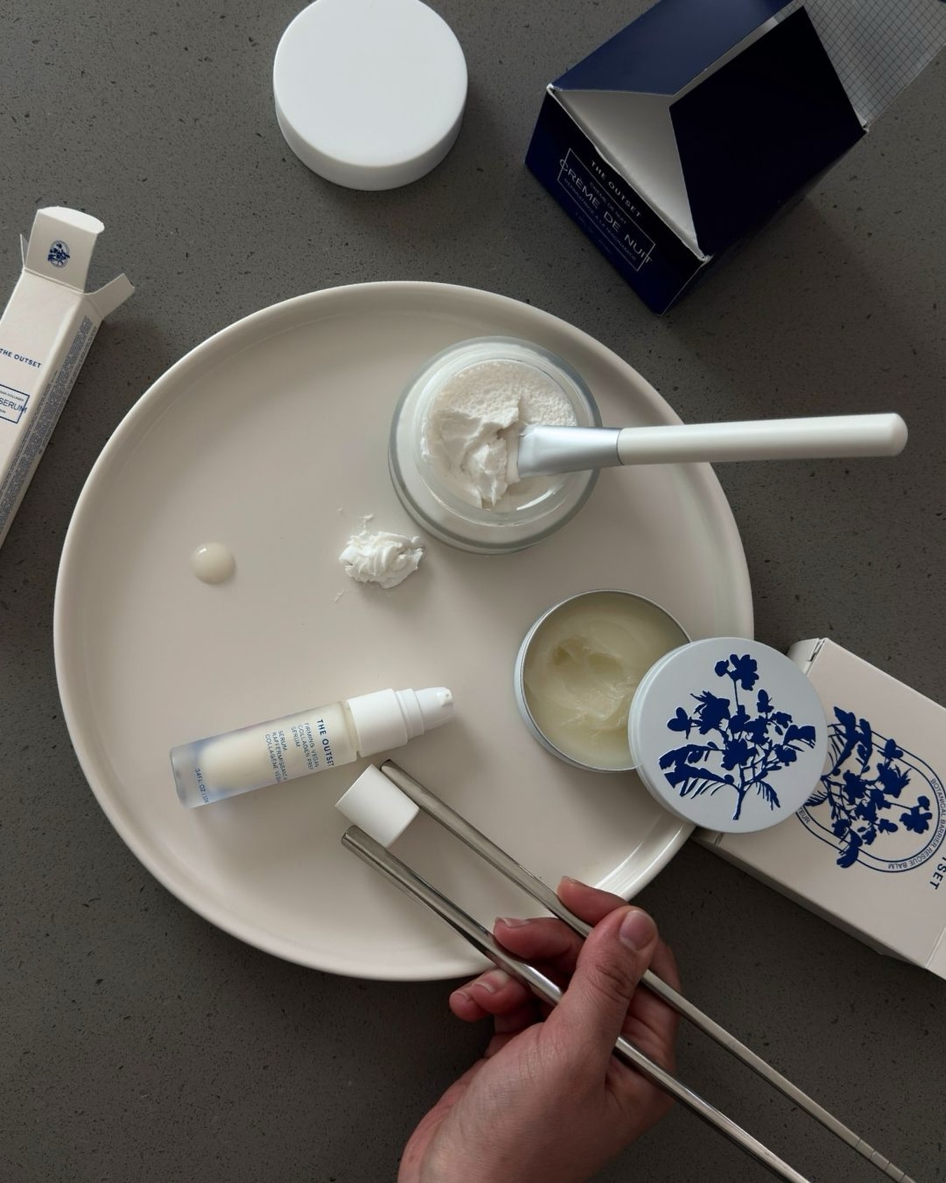 Johansson describe The Outset como la “camiseta blanca del cuidado de la piel”, y recalca que “nos complementamos muy bien con otros productos, y no se trata de una rutina complicada de varios pasos donde, si te saltas uno, el proceso no se completa o no puedes usar tus otros productos favoritos. Realmente puedes usar The Outset con cualquier otra cosa que estés haciendo”.