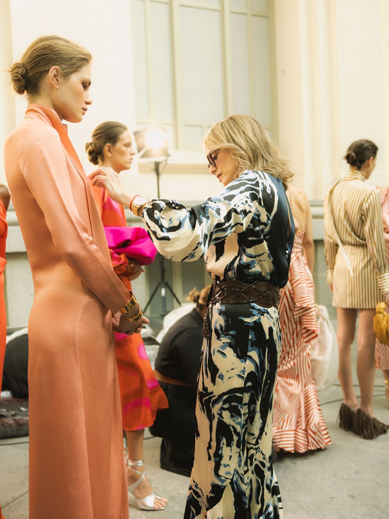 Como coleccionista de piezas mid century italianas, Silvia aprecia la interacción de tonos saturados y tonos naturales, una referencia visual que dio forma a la paleta de color para esta temporada. El resultado es un lenguaje cromático que se siente a la vez poderoso y sensible, replicando el amor por los contrastes que es característico de la casa.