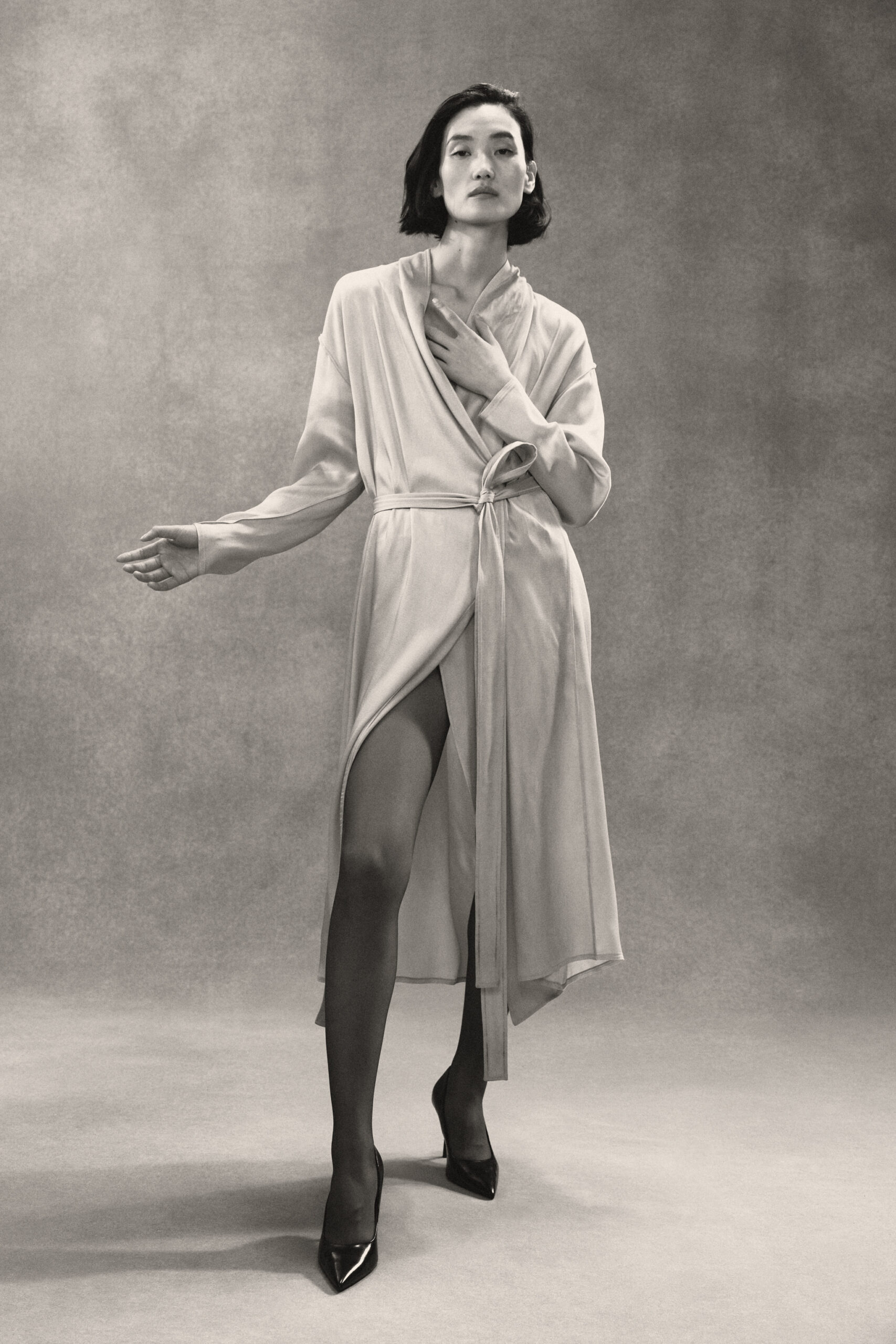 Aunque la colección incluye prendas informales, el diseñador eligió deliberadamente tejidos con raíces formales. «Presté mucha atención al equilibrio de la sastrería y a cada detalle de la construcción», señala. El resultado es una colección elegante y sutilmente emotiva. «Creo que aporta un rango de expresión más amplio del que SOSHIOTSUKI por sí solo podría lograr», afirma Otsuki sobre la colaboración.
