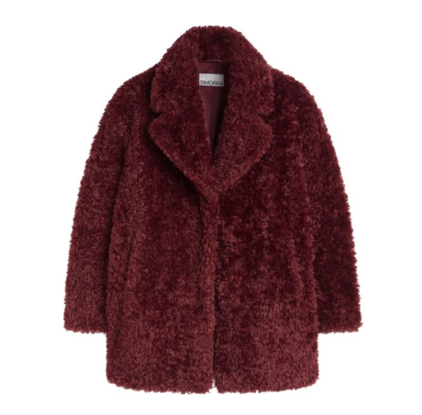 Chaquetón efecto pelo granate: 228 euros