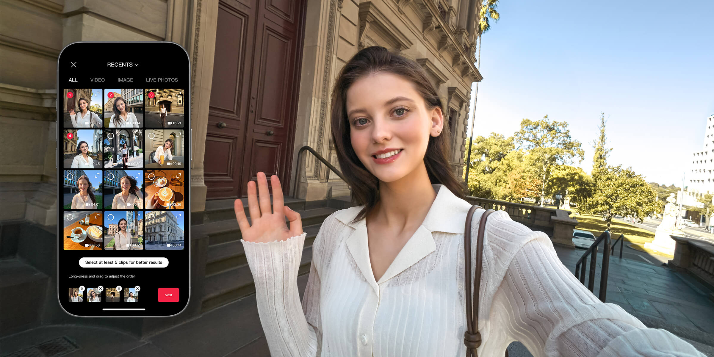 Llévala discretamente en el look —como si fuera un accesorio más— y captura los instantes que nadie ve: el backstage, los detalles de un desfile o ese cóctel en el que la luz lo hace todo. Haz de tu look del día una pequeña producción: colócala discretamente en el tocador mientras te arreglas o en el set durante un shooting; captará los gestos naturales, el brillo de las texturas, los planos que no llegarían a Instagram… hasta que los subas. Cada clip parecerá una escena de fashion film.