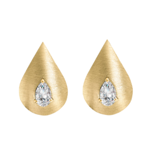 Maison H Jewels Pear Diamond Earrings in 18kt Yellow Brushed Gold Dhs14,196