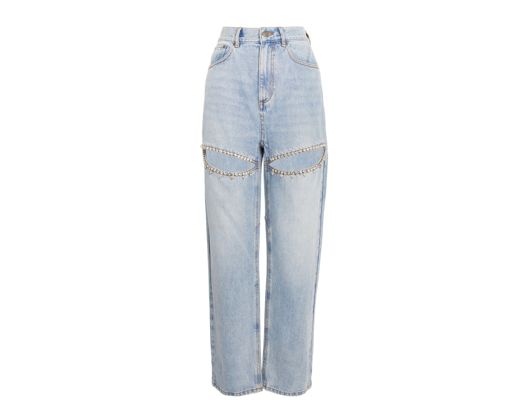 Exploding onto the scene once Taylor Swift was photographed wearing them, the Area Cut-Out jeans debut on The Lyst Index in 2024. With a bedazzled slice at the thigh, it still occupies the wearable light-wash leans territory, just with some added flirty flair.