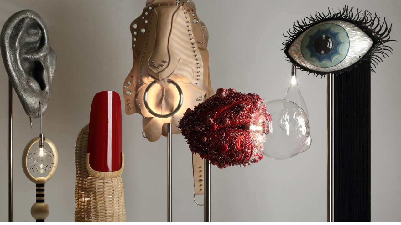 Lebanese designer Richard Yasmine reimagined bodily autonomy and the five senses as sculptural lighting in this scenography and object design installation. The exhibit translated basic human senses into optical expression, using intricate materials such as leather, wood, glass and embroidery. An example of this is shown in Yasmine’s sculpture of the lips, designed with blooming and fragile glass made florals.