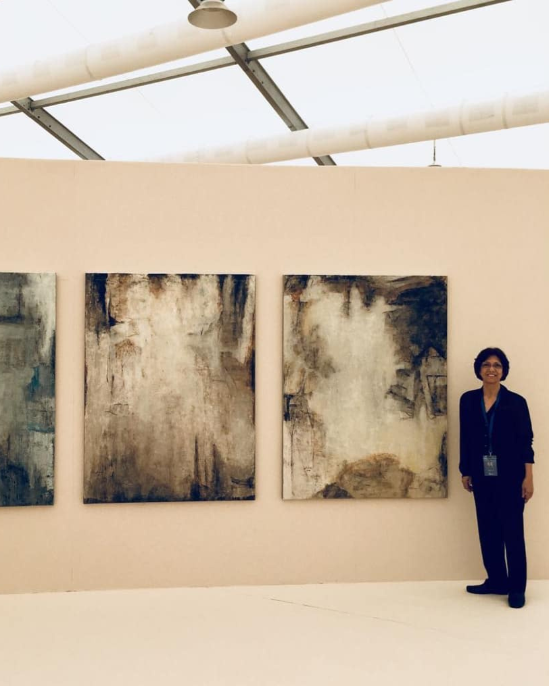 Balqees Fakhro graduated from Lone Mountain College in San Francisco, USA, with a bachelor’s degree in fine arts and art history. At the moment, she works and resides in Bahrain. Although Fakhro’s early paintings were primarily figurative and concentrated on Bahraini landscapes and townscapes, her later work exhibits a clear sense of style. Large canvases feature broad swaths of muted colours and textures that evoke the weathered walls of long-forgotten places, all inspired by the artist’s memories and the rich history of her native land.