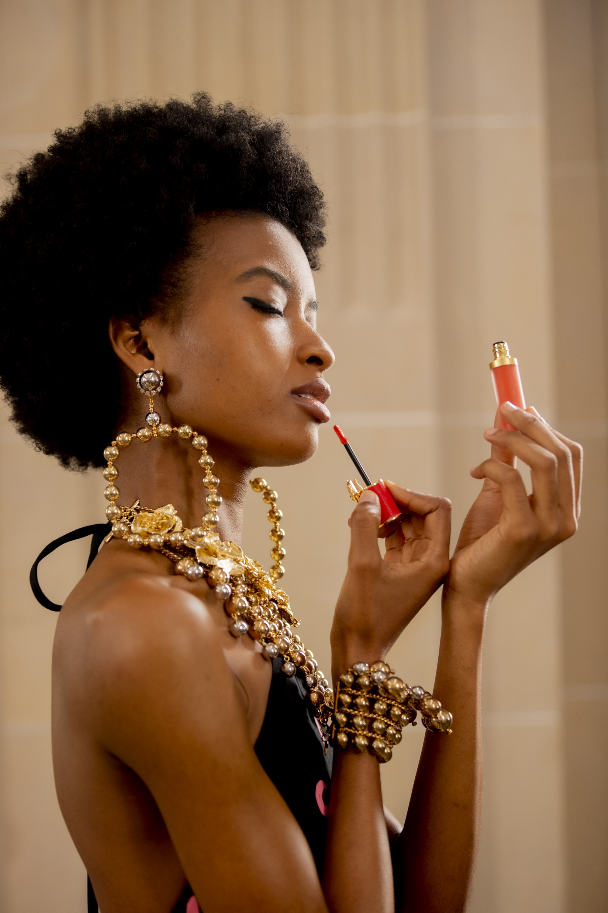C.H.: You can’t spell Herrera without color! For the Spring -Summer 2022 collection, we paired the really bold finishes like the Velvet and Vinyl Lip Liquids with matching looks like on the closing gown, or color clashed hot pinks and bold reds for a really summery, jet set feel.