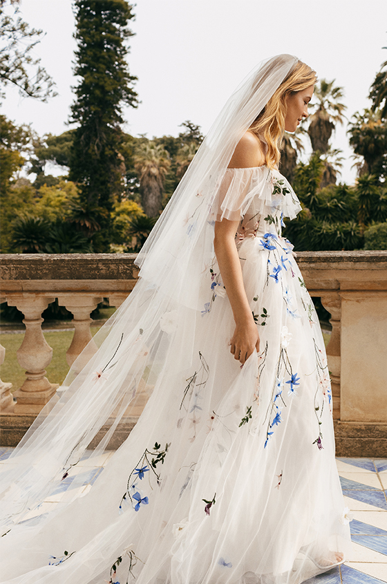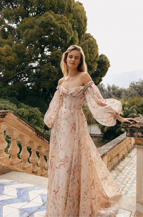 Vibrant florals aren’t just for bouquets. This bridal fashion trend for 2022 is full of romance and ideal for weddings set in nature. Whether it’s in a French Chateau courtyard, the English countryside garden, or the couple’s favourite vineyard, this floral print is a can’t-go-wrong option for bridalwear.