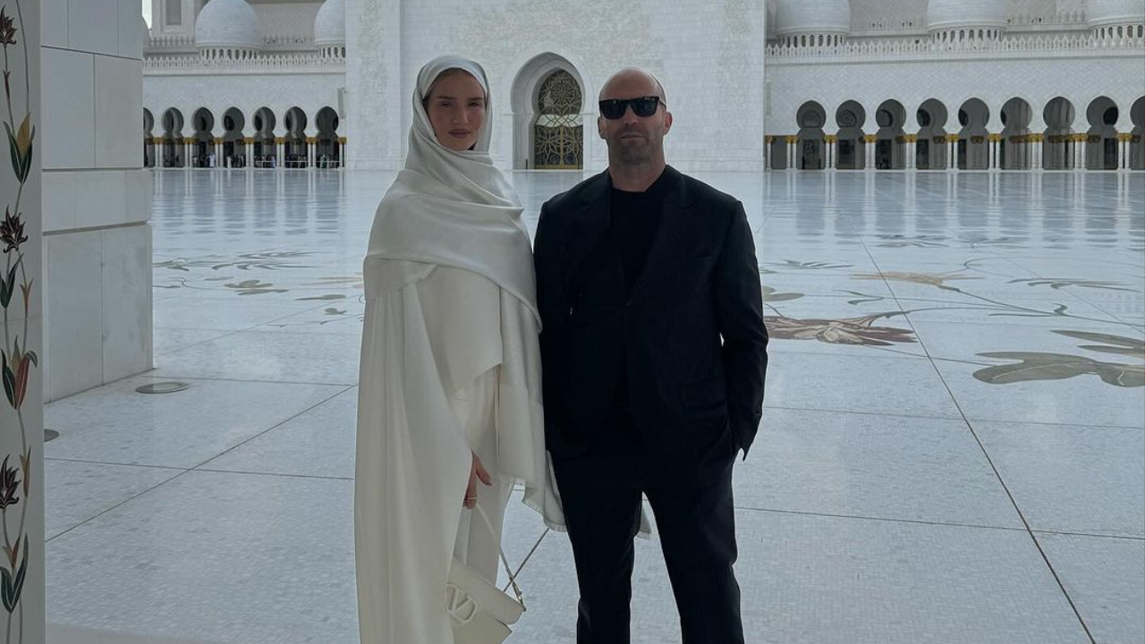 After travelling to Abu Dhabi for the Grand Prix, power couple Jason Statham and Rosie Huntington-Whiteley stayed on to enjoy the emirate for a few days. Enjoying a breathtaking sunset, the couple took pictures at the Sheikh Zayed Grand Mosque and from the St Regis helipad.