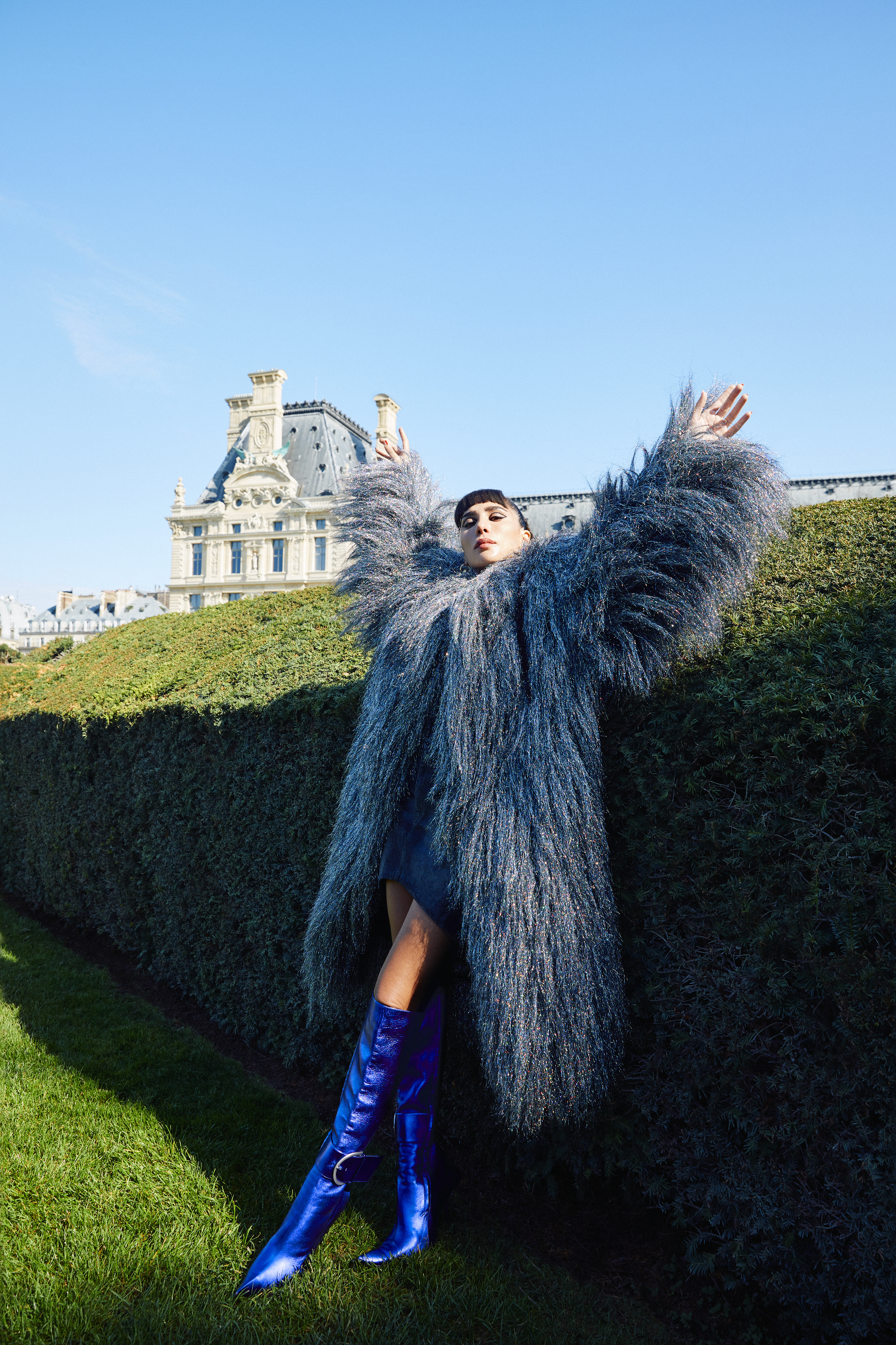 She certainly made up for it in the leafy parks and kitsch cafés of Paris wearing Balenciaga Winter ’21 for the Middle East exclusive cover of the GRAZIA 7 Senses series. “I’ve grown to be more classic over the years but there is always some sort of a unique twist happening when I put basic pieces together – like unique cut-outs or a simple idea with an interesting slant. Balenciaga is the definition of basic with a twist. There’s always an oversized silhouette or something exaggerated in it, but it stems from a basic piece.” And perhaps this is Dana at her most authentic: not constrained by clothes, boundaries or expectations. Her mother’s art features haunting ghostly figures and according to Dana, “She paints her feelings in a very abstract way,” seemingly oblivious to the echoes of her own ethereal melodies, process and purpose until this moment. “That’s amazing. You just gave me a brilliant idea to use one of her paintings as cover art for one of my songs! I never thought to make the link.”