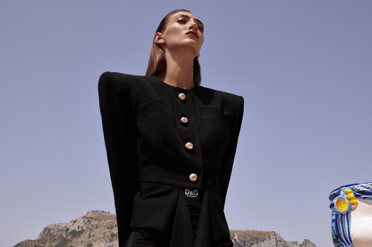 Puff Shoulder Blazer, Slinky Shorts With A Decorative Skirt Part, High-Heeled Shoes, DOLCE&GABBANA