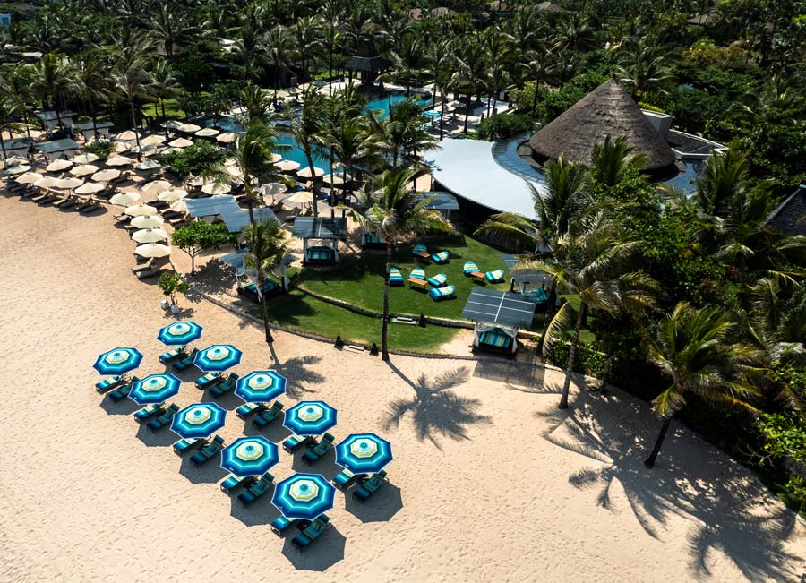 The Missoni beach vision continues its travels all the way to Indonesia. At The Ritz-Carlton in Bali, the high-fashion house infuses the tropical paradise with pattern play. Branded loungers and vibrant cabana cushions transform the resort’s serene beachfront into a Balinese-style runway.