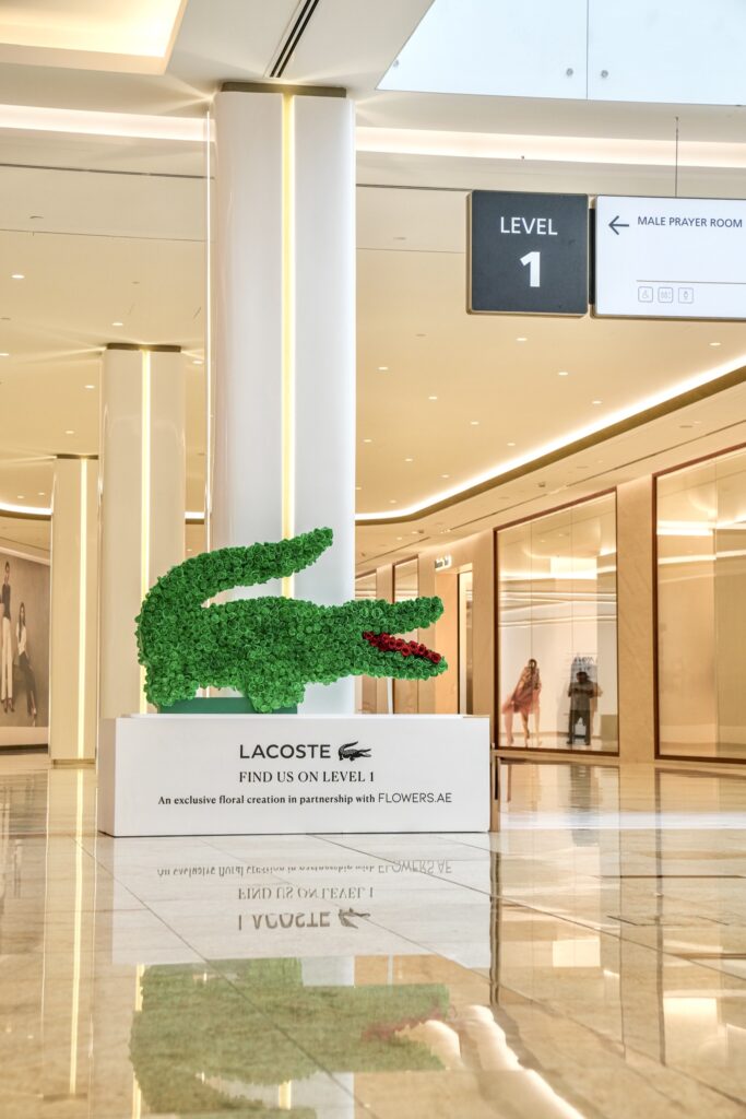 Fashion met florals in a bold and dynamic celebration as Flowers.ae marked the opening of Lacoste’s new store at Palm Jumeirah Mall. At the heart of the event stood an impressive floral installation of the brand’s iconic crocodile logo, captivating guests and passersby. Over two full days, a Flowers.ae cart was stationed in-store, offering bespoke floral arrangements tailored to customers’ purchases, bringing fashion and florals together in a memorable yet personal way.