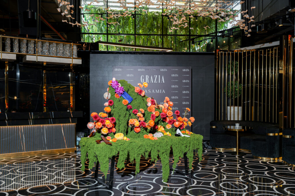 Casamia is known for its thoughtfully curated showroom, which showcases far more than just a design destination; it’s a place where curation, culture, and community all come together, making it the perfect canvas for our event, anchored in elegance and ease. Guests were led into the light-filled Al Quoz space, where a gorgeous floral installations from Darcey Flowers were displayed, think shoes trapped in soft petals, bags suspended in greenery, and a beauty that felt more like a daydream than a showroom.