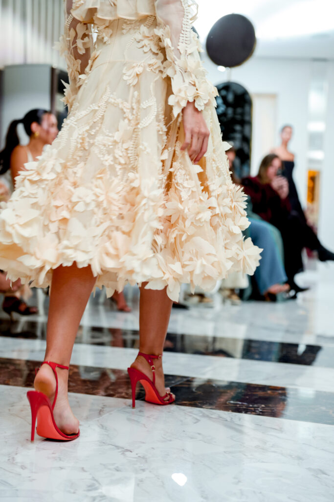 Casamia is known for its thoughtfully curated showroom, which showcases far more than just a design destination; it’s a place where curation, culture, and community all come together, making it the perfect canvas for our event, anchored in elegance and ease. Guests were led into the light-filled Al Quoz space, where a gorgeous floral installations from Darcey Flowers were displayed, think shoes trapped in soft petals, bags suspended in greenery, and a beauty that felt more like a daydream than a showroom.
