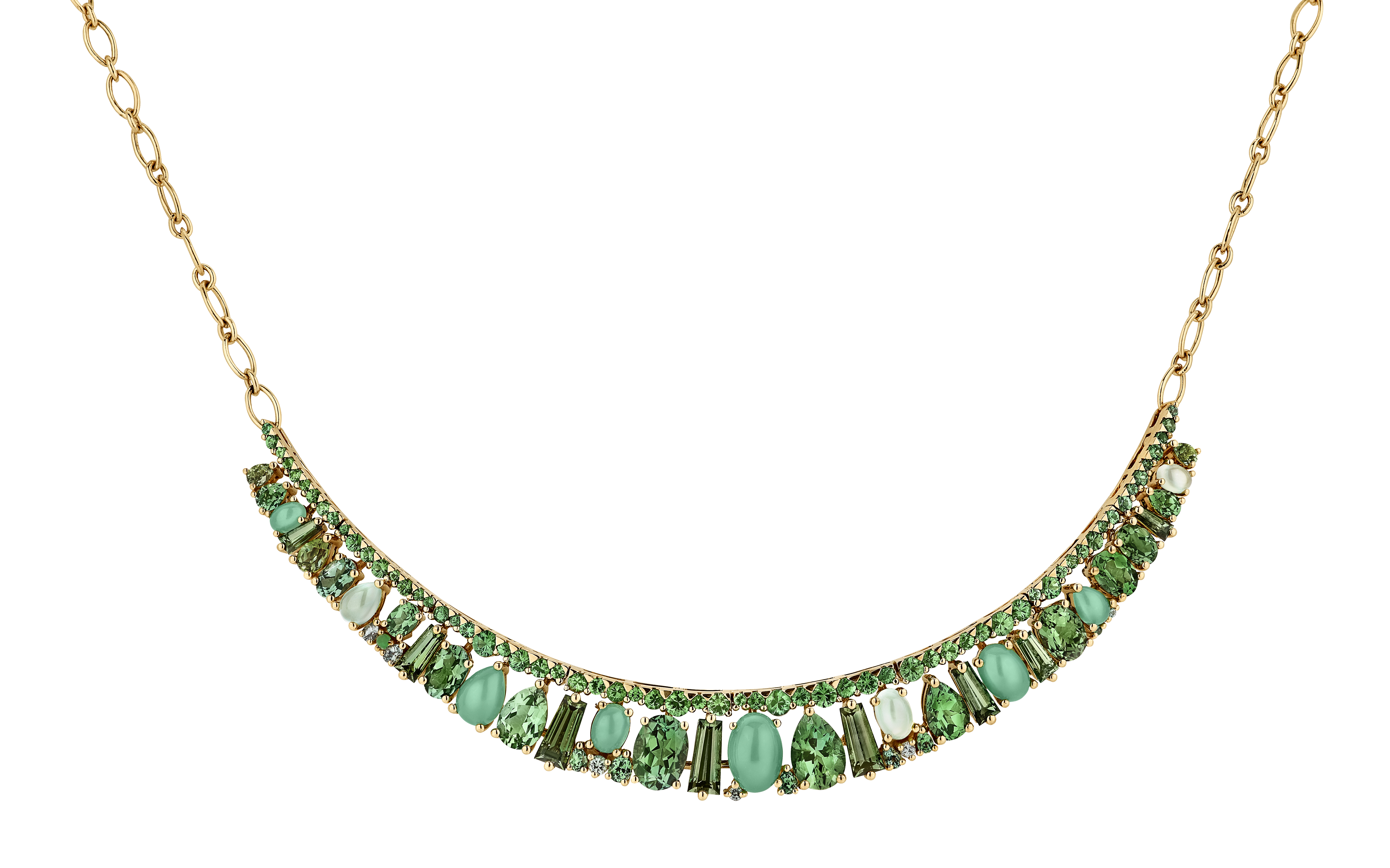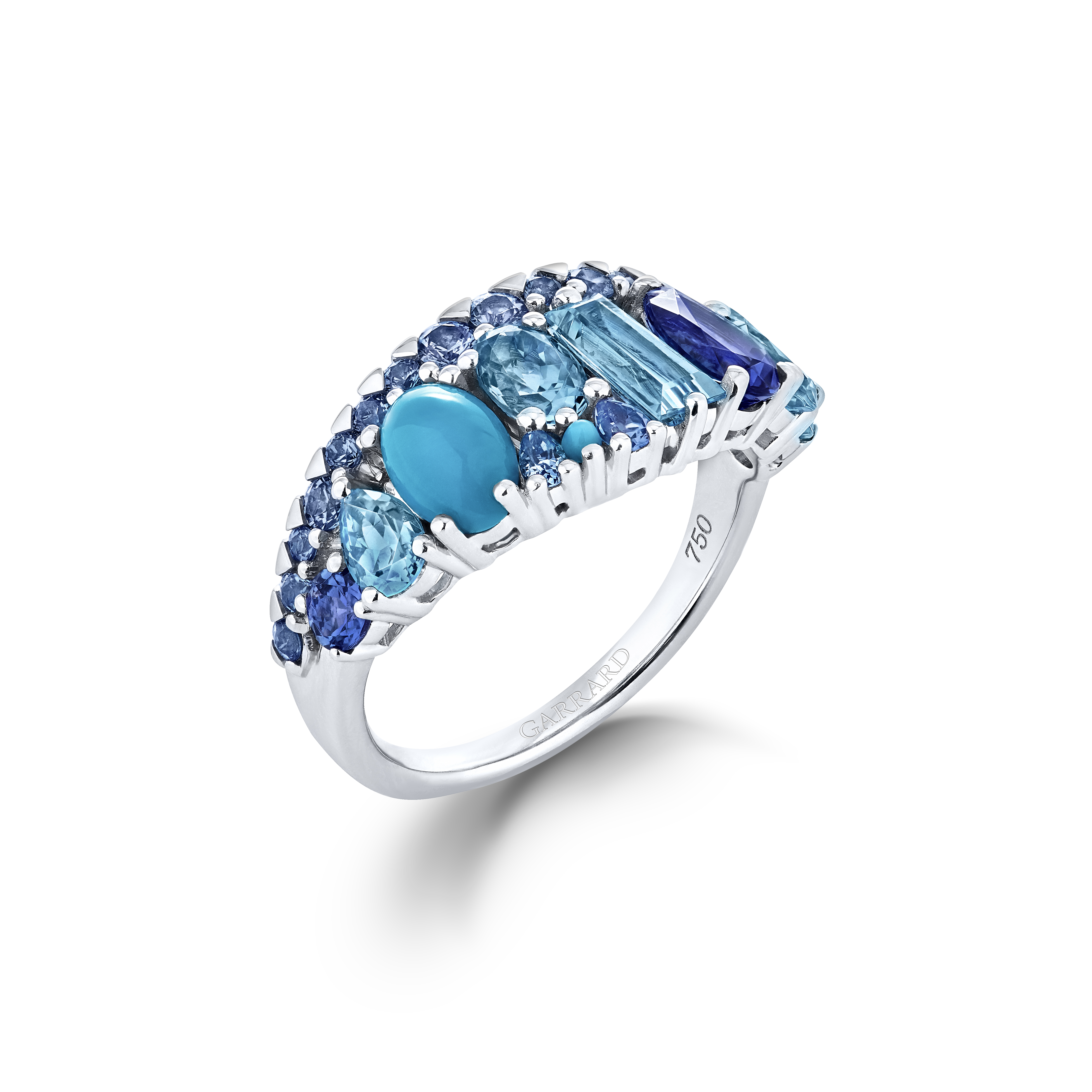 This history might intimidate some, but Prentice is no novice in the fine jewellery industry. Before joining Garrard in 2012, she cut her teeth for twenty years at iconic labels such as Cartier and Fabergé. For her latest collection, titled “Blaze,” Prentice “wanted to take Garrard’s iconic 1735 cluster motif and turn it on its head.” She executed this plan by centring the cluster in the middle of the jewel and “framing it with a placement of masterfully selected monochromatic gemstones.” Prentice is most excited to show customers this cluster inversion because of its novelty. “It took sheer creativity, unlimited by design rules or tradition,” to create it, she shared.