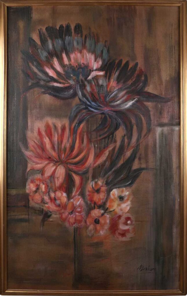 Among the first Palestinian women to formally study art, Nahil Bishara understood the stakes of preserving a landscape through her creative practice. Her granddaughter, Talia Bishara, who, along with her siblings, has devoted herself to sustaining Nahil’s legacy, recalls that her grandmother’s very name became synonymous with flowers. “She found energy in nature,” explains Talia. Across paintings, ceramics, fabrics, sculpture, and even culinary art, Nahil’s work unfurled in vivid, lustrous depictions of native flora. As Talia notes, Nahil sought to transpose Palestine’s beauty, not only its struggles. “It was important for her that she didn’t just paint the Nakba,” Talia says. “That wasn’t all Palestine was to her… she resorted to the flowers and landscape of the old city to explore all of the materials to capture the beauty of the landscape.”
