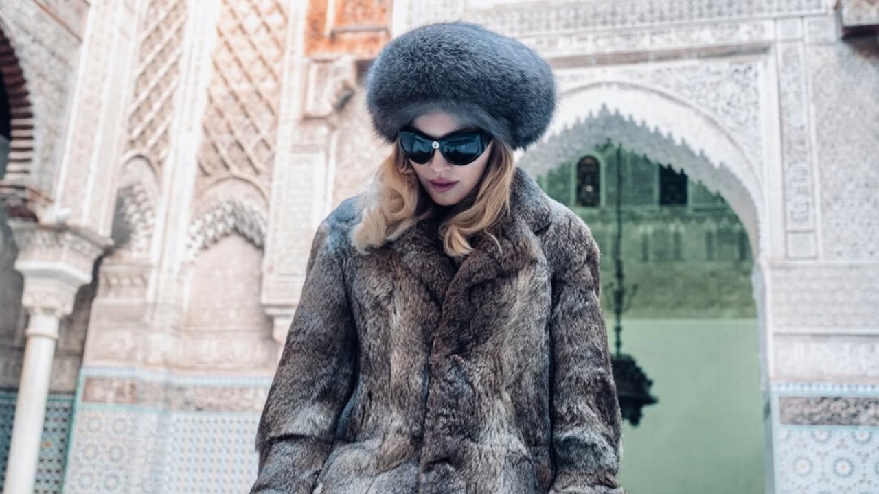 Not only did Madonna embrace the beautiful Moroccan backdrops, but she also embraced the Moroccan winter, posing in a plush fur coat and headpiece ensemble while exploring the capital. The likes of a ‘Berber Queen’: she stunned in a long floor-length gown embellished with a gold bejewelled body piece, finished off with a matching velvet cape and lace gloves.