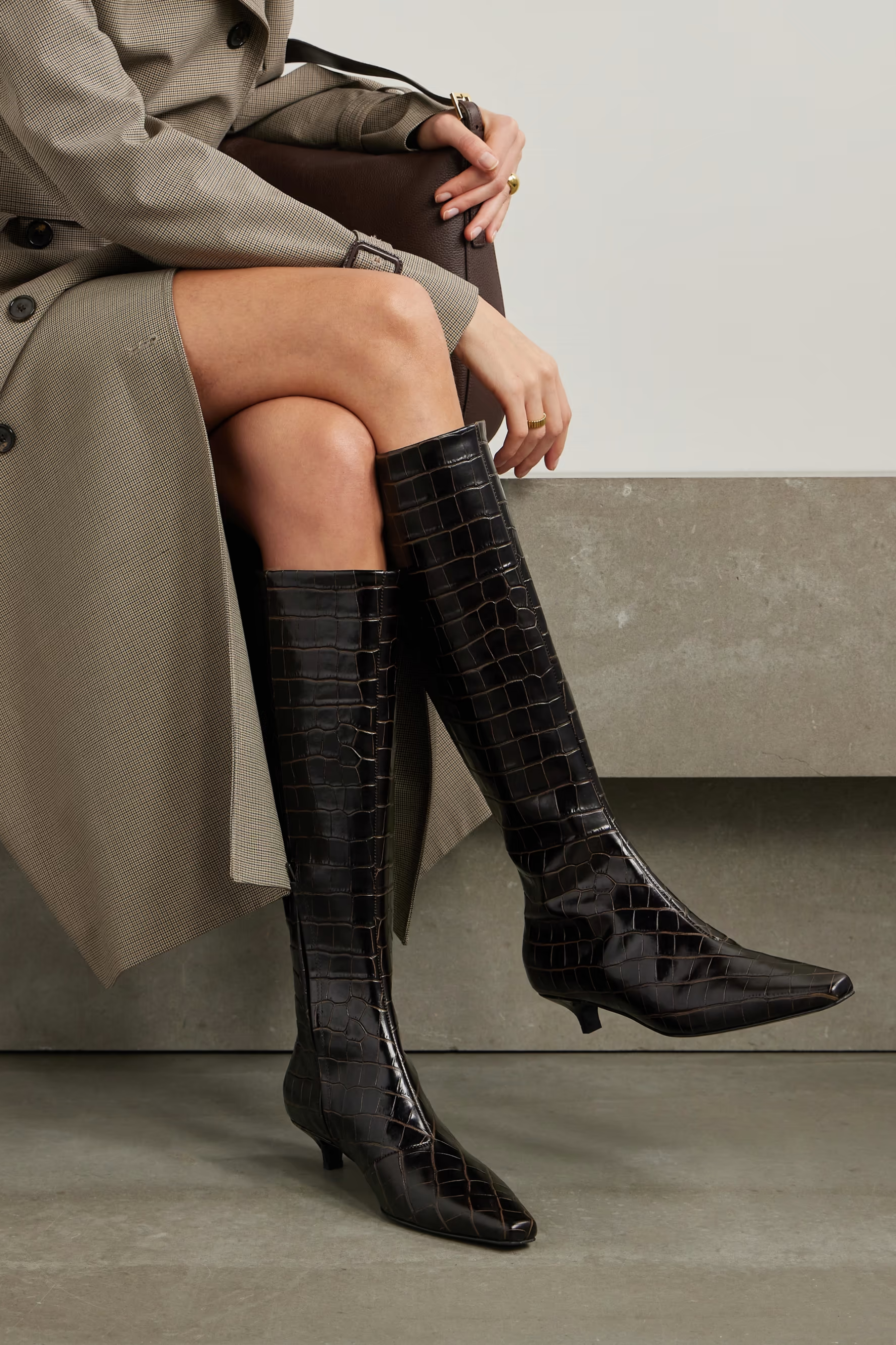 Give us anything Totême and we’re going to love it, particularly these croc-effect knee-high boots.
