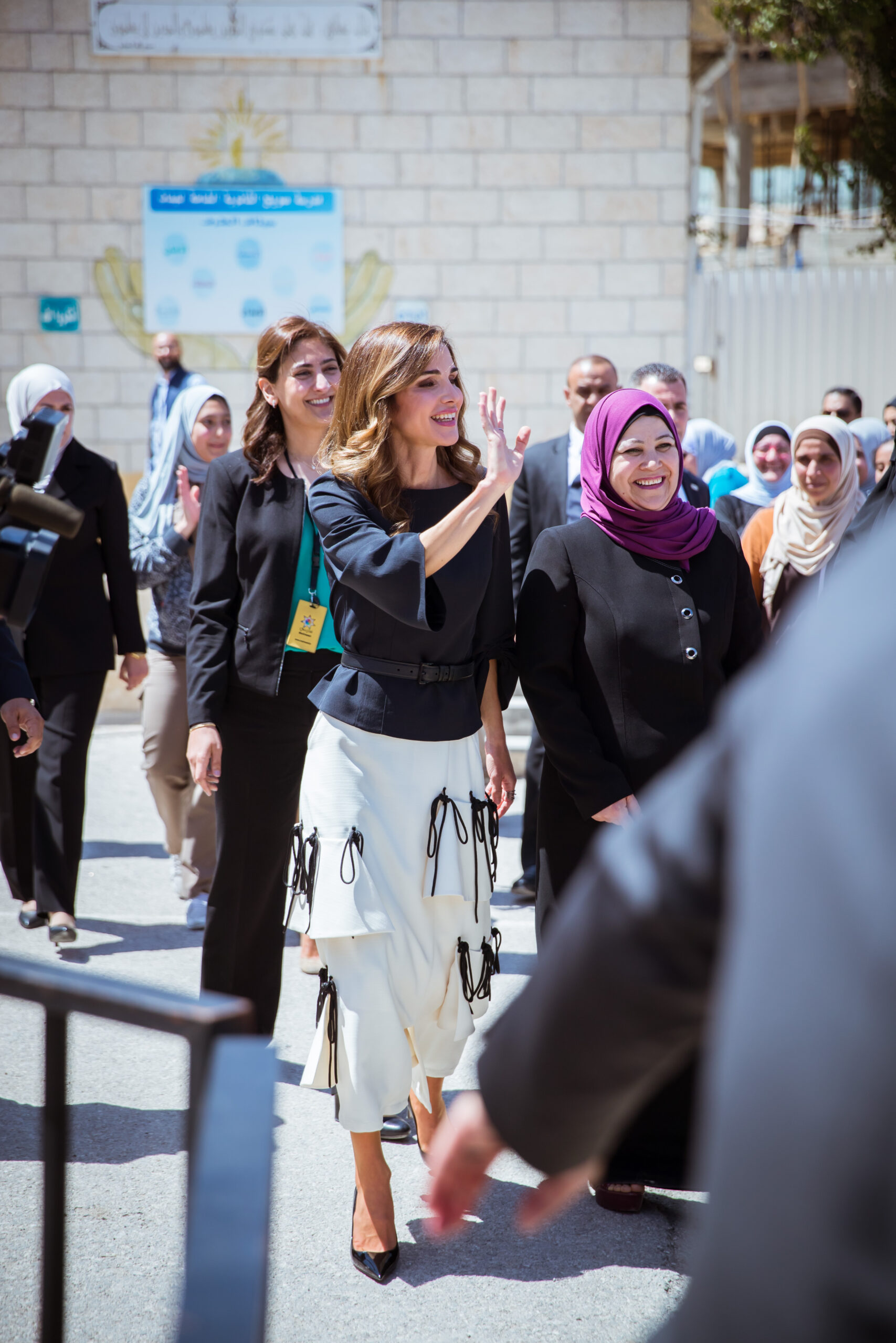 Worn by Princess Salma, her ensemble consisted of a black knitted high-neck top and REEMAMI’s signature skirt—the same one Queen Rania wore in 2018 when she visited the Sweileh Secondary School for Girls.