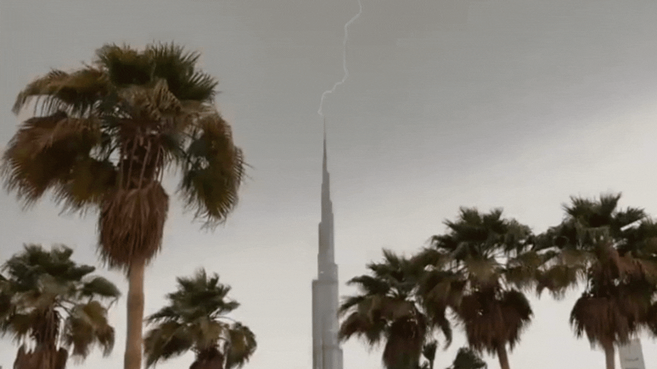 In a video captured by Sultan, dark clouds and the storm engulf the Burj Khalifa. Suddenly, the world’s tallest building appears to be struck by lightning on its spire – the very top of the Burj Khalifa.