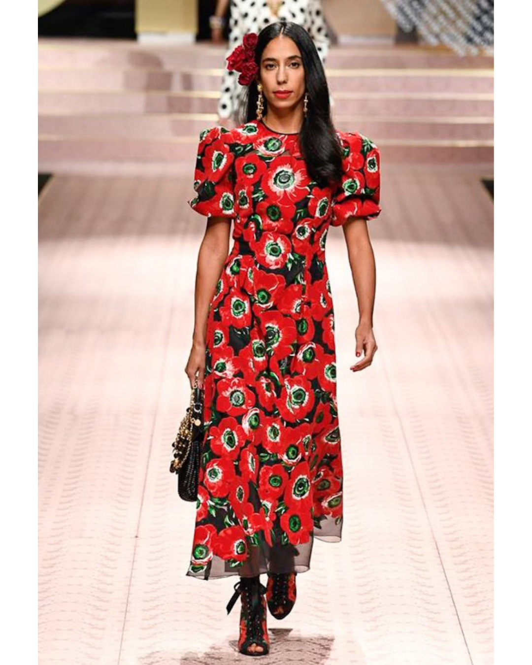 This Bahraini princess is on the road to building her fashion empire. Sheikha Dana Al Khalifa has long been considered a rising name in the fashion world. The stylish GCC royal doubles as a lawyer, CEO and fashion blogger. She is pictured strutting down the Dolce & Gabbana SS19 runway, as she adds modelling to her ever-growing CV. Wearing an eye-catching poppy-print, ankle-length dress with puffy sleeves and lace hem, she thanks the fashion house for an “unreal” experience.