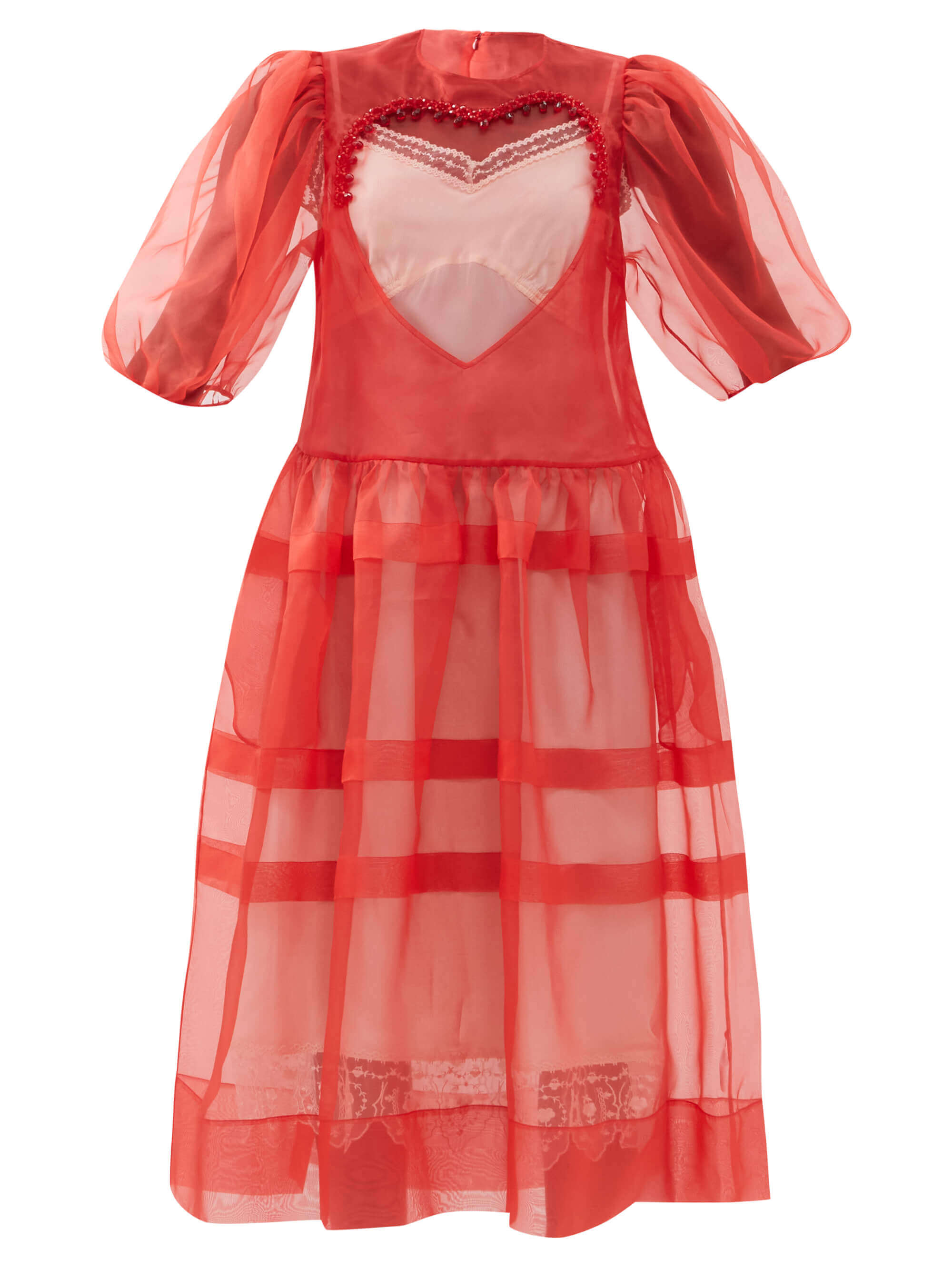 Luxury fashion e-tailer MatchesFashion released a fashion edit inspired by Valentine’s Day that will make you a walking holiday card. The festive collection is filled with on-theme items, from tulle gowns by Simone Rocha (pictured above) to heart shaped Gucci hairclips.