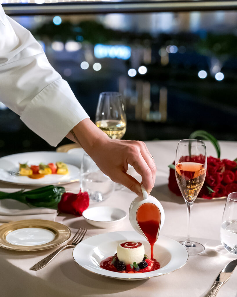 Of course, when it comes to dining in the clouds, At.mosphere Burj Khalifa is the place to be. Inviting guests on February 14, 2025, expect to be swooned with the ever-so exquisite menu filled with tantalising flavours. For this years Valentine’s Day, a curated five-course menu will be plated on your table. Priced at Dhs1,250 per person, the night will start with a soft bite of a hors d’oeuvre. Leading to a much-anticipated buttery gnocchi soufflé, all the way to perfectly end the night with a savoury and gently smoked salmon.