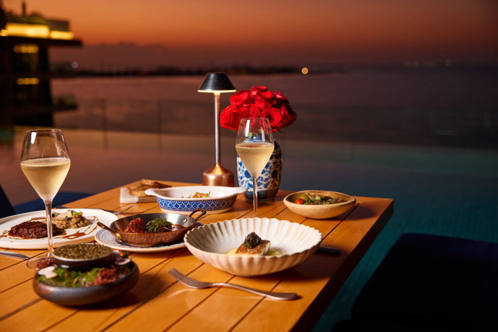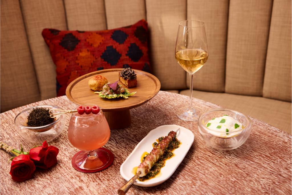 Where else can you find DIFC’s top spot for the hearts? Well, for the season of love, it’s in Kaspia. Setting the stage for a night of passion and luxury, wrapped in timeless elegance with ambient dimmed lighting, and a soulful double bass singer serenading in multiple languages, every moment feels like a scene from a classic romance. Indulge in Kaspia’s renowned à la carte menu, a specially crafted Love from Above cocktail, and an exclusive Valentine’s dessert. For those who crave a touch of opulence, personalised Champagne bottles and custom caviar tins are available with a little advance notice, turning your night into a bespoke celebration of love.