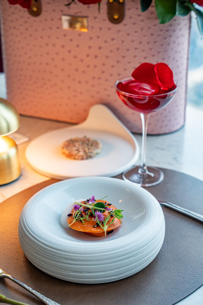 Masterfully curated by Michelin-starred Chef Giovanni, Armani/Ristorante is inviting couples to celebrate Valentine’s Day with a six-course menu of pure, excellent gastronomy. Taking you on a journey, the menu starts with the exquisite dish, Tonno, featuring tuna tartare and Kristal caviar. Then onwards to the Granchio Reale with Atlantic king crab and raspberry gazpacho with a vibrant beetroot Risotto, and the Pasta all’Uovo with blue lobster agnolotti, alongside a tender Cervo venison loin–needless to say it’s a menu brimming with new tastes. The evening concludes with a sweet closing: Rosa, a white chocolate rose dessert.The price is Dhs850 per person.