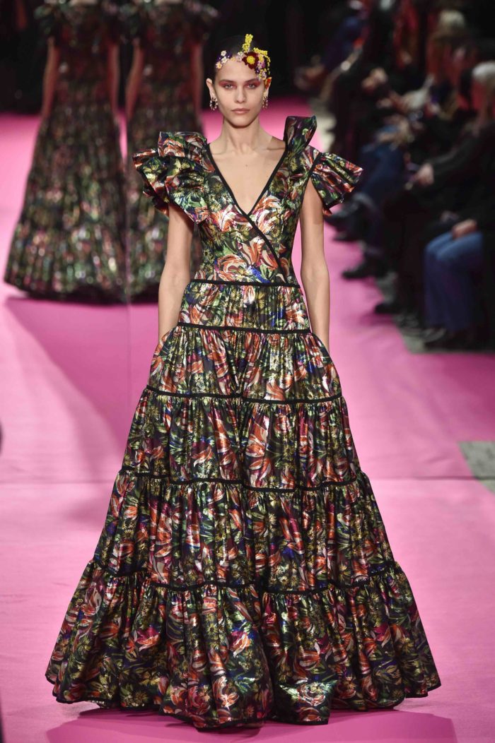 ¿En flores? ¡Sí! Y más en esta propuesta de Alexis Mabille. Lo que más nos gusta del vestido son quizá las ondas que se crean por la manera en que este está confeccionado. Además, los hombros XXL le darán ese wow factor que necesita lucir.