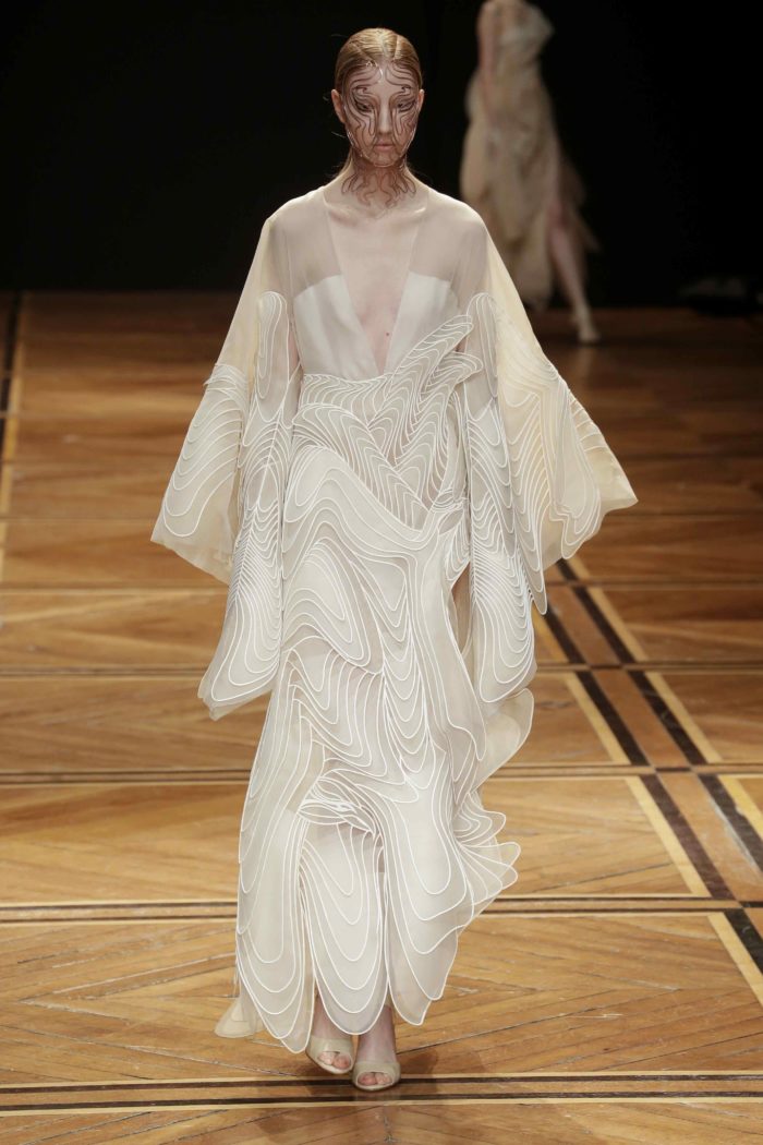 Sabemos que los vestido de Iris van Herpen no son tan fáciles de llevar. Sin embargo, esta temporada la diseñadora presentó un diseño que es perfecto para la silueta de Yalitza. Aunque el escote predomina por el frente, las ondas que forman la parte baja se llevan la atención. En él, un chongo impactante sería la cereza del pastel.